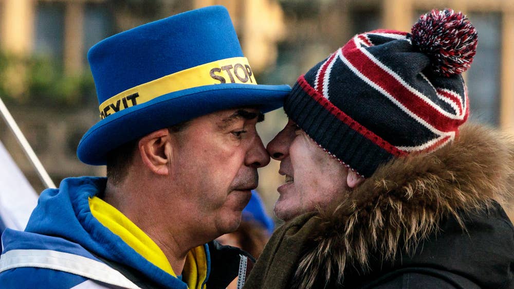 Police separate clashing Brexit protesters outside Parliament